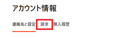5. アカウント情報画面にて「請求」メニューをクリックする