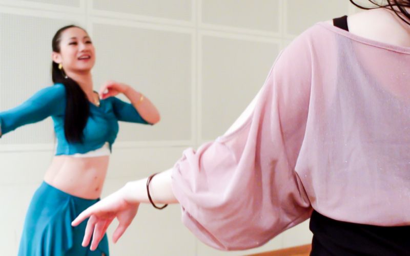 民族的な音楽が好きで、その音楽に合わせて踊れたら素敵だなと思いベリーダンスを始めました。ダンスは全くの初心者でしたが、始めて3か月あたりで感覚をつかみ始め、徐々に基礎的な動きを習得しながら楽しく踊れるようになりました。